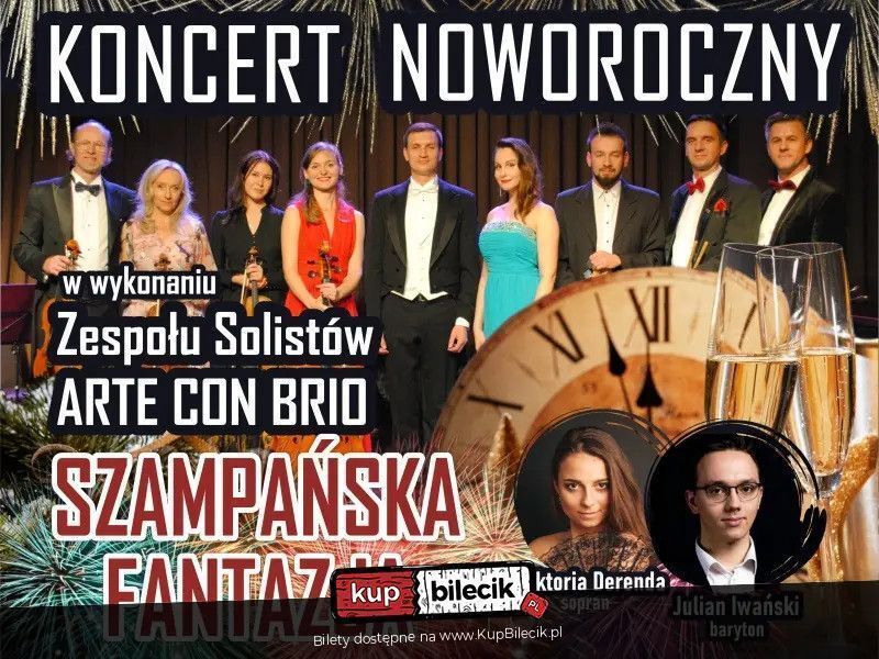 Rozpocznij Nowy Rok w wyjątkowy sposób! Zapraszamy na niezwykły Koncert Noworoczny "Szampańska Fantazja", który przeniesie Państwa do muzycznego świata Wiednia, Paryża i Berlina przełomu XIX i XX wieku. To idealna propozycja dla wszystkich, którzy chcą wejść w 2026 rok w towarzystwie pięknej muzyki i doskonałych wykonawców. W programie znajdą się najpiękniejsze przeboje solowe i duety z operetek Johanna Straussa, Franza Lehára i Emmericha Kálmána, pieśni neapolitańskie, fragmenty musicali oraz polskie utwory z lat 20. i 30. J. Petersburskiego i H. Warsa, a także nowsze - m.in. M. Grechuty i S. Krajewskiego. Wokalne popisy przeplatać będą znane instrumentalne przeboje w nowych aranżacjach. Bilety do nabycia na: KupBilecik.pl